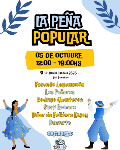 La peña solidaria “La Popular” se prepara para volver a reunir a la comunidad de San Lorenzo con música, baile y artistas invitados, en una jornada donde el arte se combina con la solidaridad. Lo recaudado será destinado a acondicionar el espacio Casa Pueblo, que funciona en la Capilla Madre de Itatí desde diciembre de 2021 y que hoy necesita tareas de mantenimiento para seguir ofreciendo contención y acompañamiento a quienes asisten al lugar.