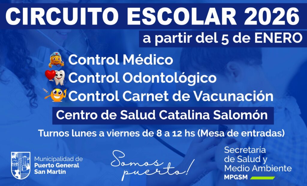 La municipalidad de Puerto General San Martín puso en marcha su “Circuito Médico Escolar», una iniciativa gratuita destinada a niñas, niños y adolescentes que residan en la ciudad y no cuenten con cobertura de obra social, de cara al inicio del ciclo lectivo 2026.