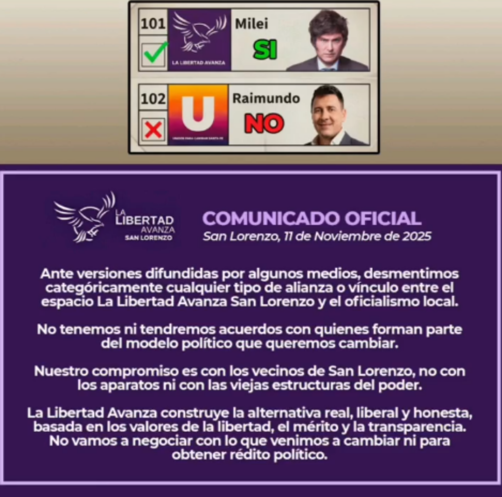 El espacio La Libertad Avanza San Lorenzo emitió un comunicado