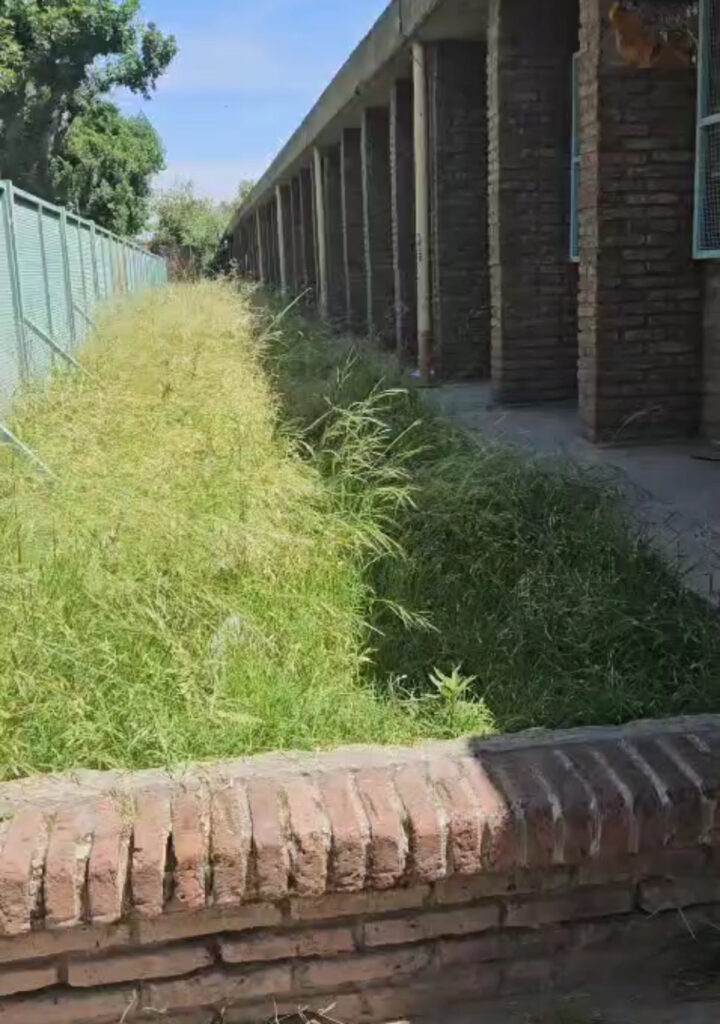 Pastizales, basura acumulada y riesgo eléctrico rodean las escuelas de barrio Moreno